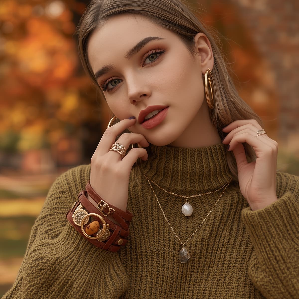 لایه‌بندی، نه تنها برای لباس‌های پاییزی، بلکه برای اکسسوری‌ها نیز یک ترند کلیدی است. تصور کنید چندین گردنبند با طول‌های متفاوت که به زیبایی روی هم قرار گرفته‌اند، یا ترکیبی از چندین دستبند نازک و پهن که بر روی مچ دست شما خودنمایی می‌کنند. این هنر ترکیب و تطبیق، به شما امکان می‌دهد تا خلاقیت خود را به کار بگیرید و استایلی کاملاً شخصی‌سازی شده و منحصربه‌فرد ایجاد کنید. انگشترهای بند انگشتی در کنار انگشترهای معمولی، یا ترکیب گوشواره‌های مختلف در صورت داشتن چند سوراخ، همگی بخشی از این ترند هیجان‌انگیز هستند. لایه‌بندی، به شما اجازه می‌دهد تا تمام اکسسوری‌های مورد علاقه خود را به طور همزمان بپوشید و داستانی بصری را روایت کنید.